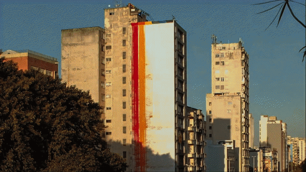 painted a grey building with the colours of Pride,